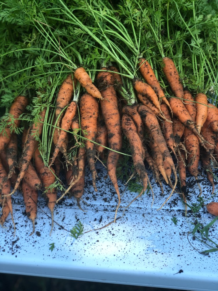 Carrots: Remove carrot tops, but don’t discard. They can be used to make carrot top pesto. The roots themselves should be stored in the fridge and will last a few weeks or more.